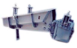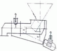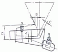 電磁振動給料機設(shè)計時未考慮倉壓的影響,為保證給料機正常工作及滿足給料量要求,應(yīng)盡量減少倉壓對給料機的影響。因此在設(shè)計溜咀時,應(yīng)用溜咀的后側(cè)板承擔(dān)料柱的垂直壓力,溜咀型式及配置參見下圖。